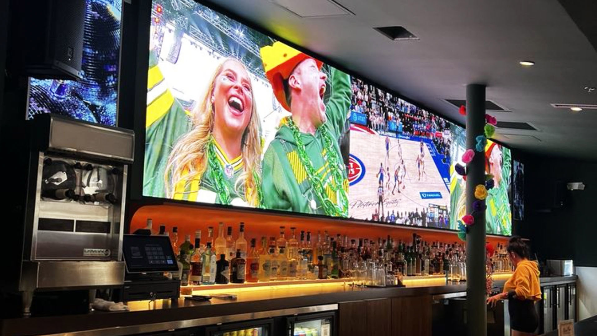 To meet the demands of Atlee's Rally, LED Studio delivered a stunning 27-foot video wall powered by their cutting-edge VIVID technology - a chip-on-board (COB) solution engineered specifically for high-traffic environments like sports bars. Built for durability, the COB construction provided exceptional resilience against everyday impacts, making it ideal for the venue’s energetic atmosphere.