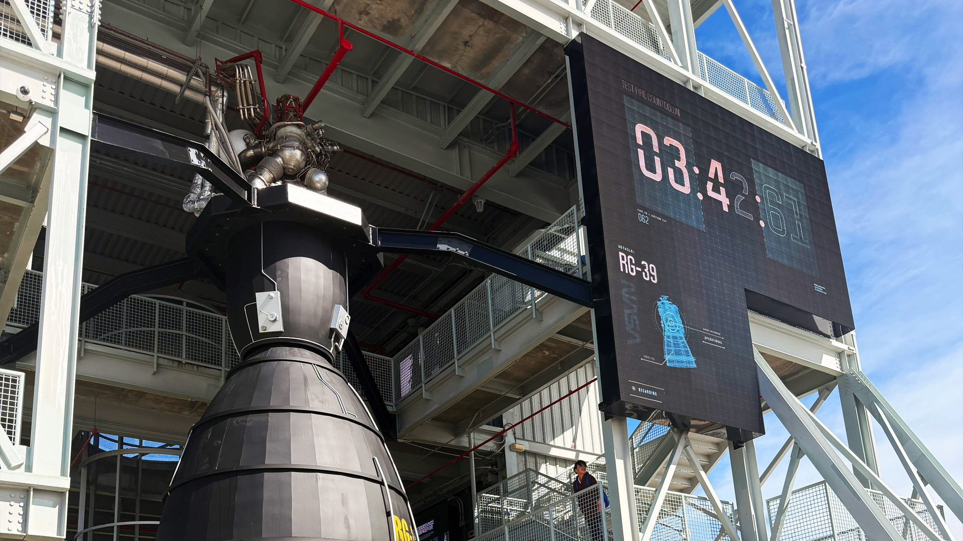 The Gantry features an L-shaped display synchronised with a theatrical simulation, including a 7.5-ton mock engine and an AI character “Sol” resolving technical challenges in real time.