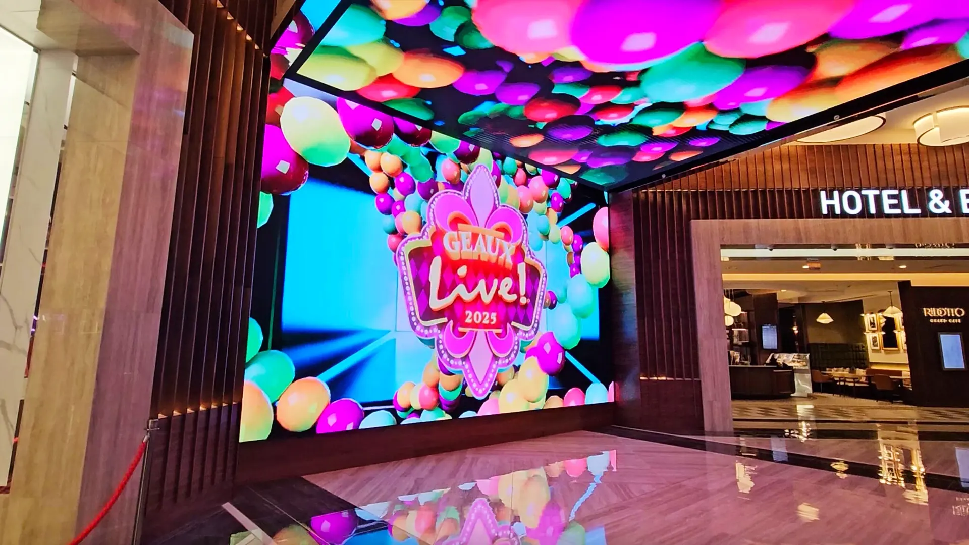 The LED display integration at Live! Casino & Hotel Louisiana has redefined the guest experience, immersing visitors in a visually captivating environment from the moment they arrive. The seamless blend of gaming and hospitality areas through high-resolution LED screens creates an engaging, dynamic atmosphere that enhances excitement and entertainment.