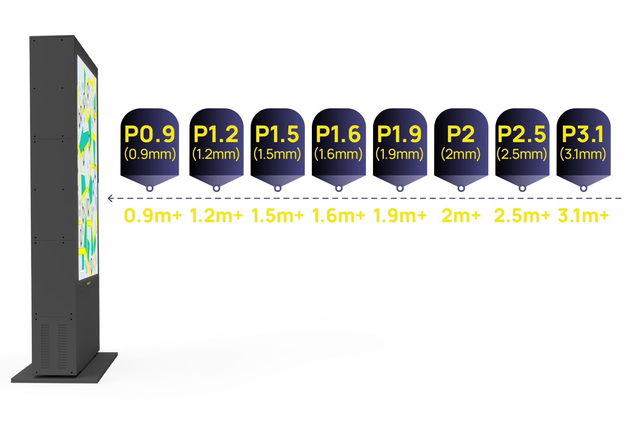 With multiple screen size options to choose from, strategically roll out a range of displays at the same venue, with each one catering to a different requirement or application. When size matters, we've got you covered!