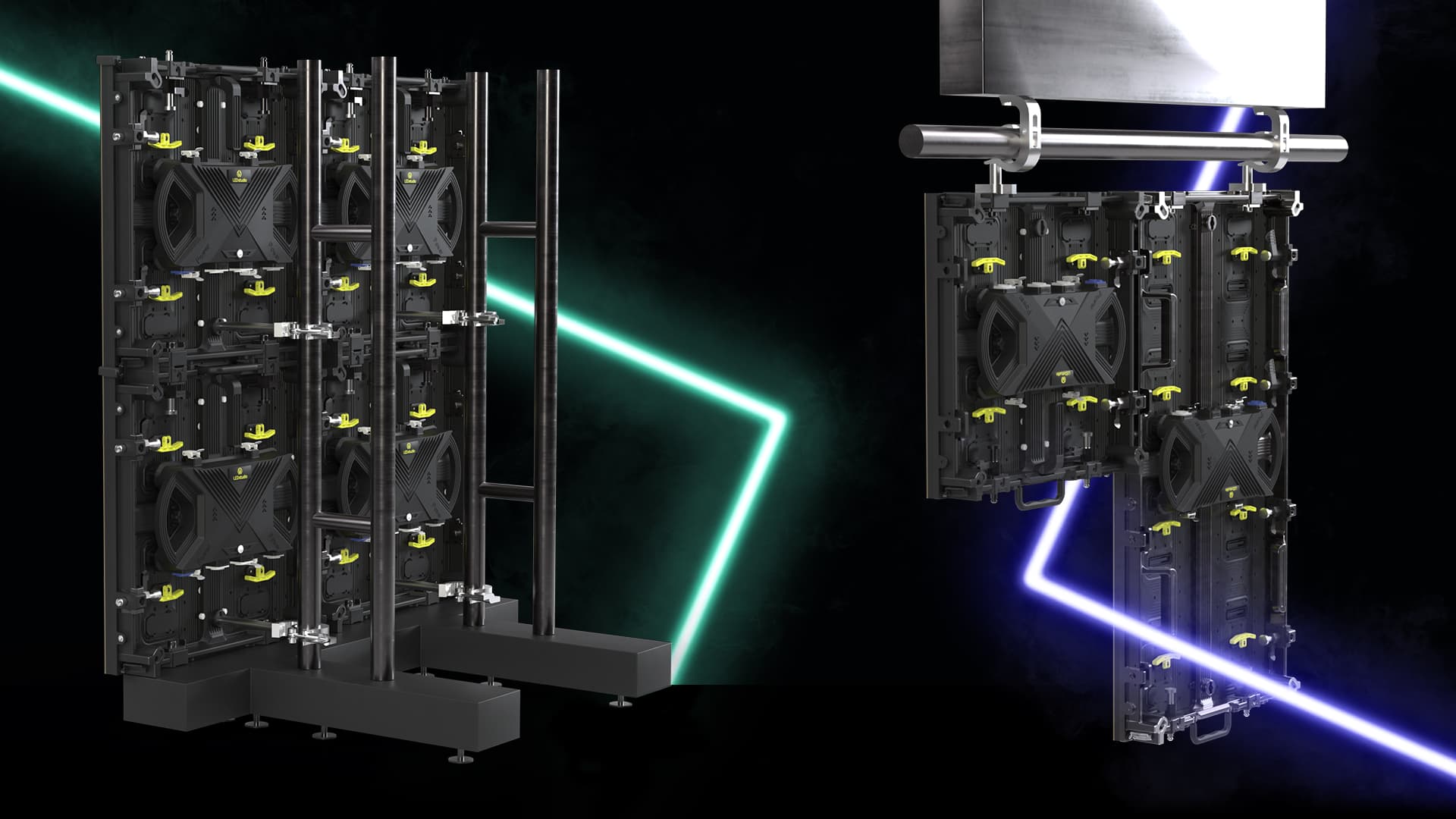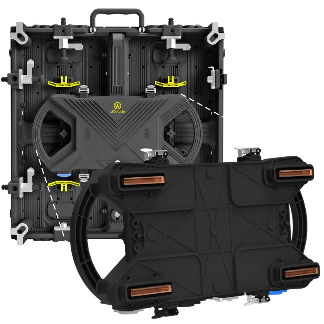 The EMERALD Pro LED display cabinets offer flexible installation options, including ground stacking or hanging from a truss, allowing for quick and efficient setups. These versatile fixing solutions cater to the evolving demands of various event and display landscapes, making the EMERALD Pro an adaptable choice for any venue..